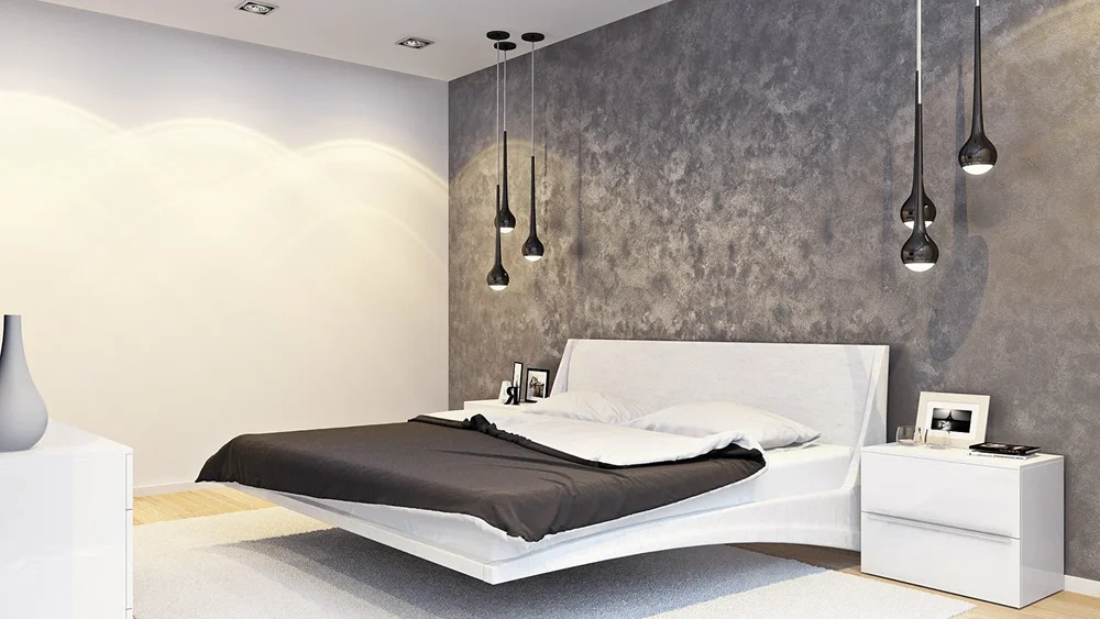 Нанесение штукатурки добавляет поверхностям глубину, игру света и тактильную выразительность. Это покрытие идеально для создания акцентных стен без резких переходов за счет мягкой, неравномерной текстуры. Особенно эффектно смотрится при направленном освещении: в зависимости от угла падения меняется восприятие неровностей. Из дополнительных плюсов — штукатурка не требует стыков и швов.