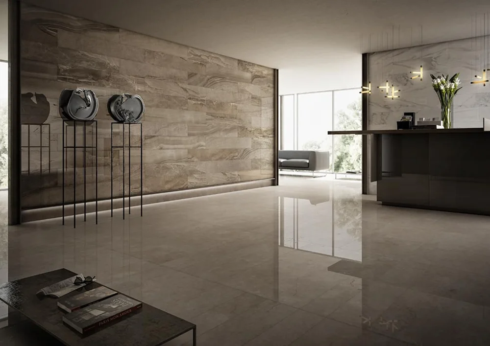 Керамогранит идеален для современных стилей: минимализма, лофта, контемпорари, техно. Он гармонично взаимодействует с микроцементом, деревянными рейками, стеклом и металлическими акцентами. В классических интерьерах его используют осторожно, только в виде имитации мрамора или травертина. В любом случае, главное — создать гладкое ровное основание: даже небольшие перепады исказят отражение на полированной поверхности.