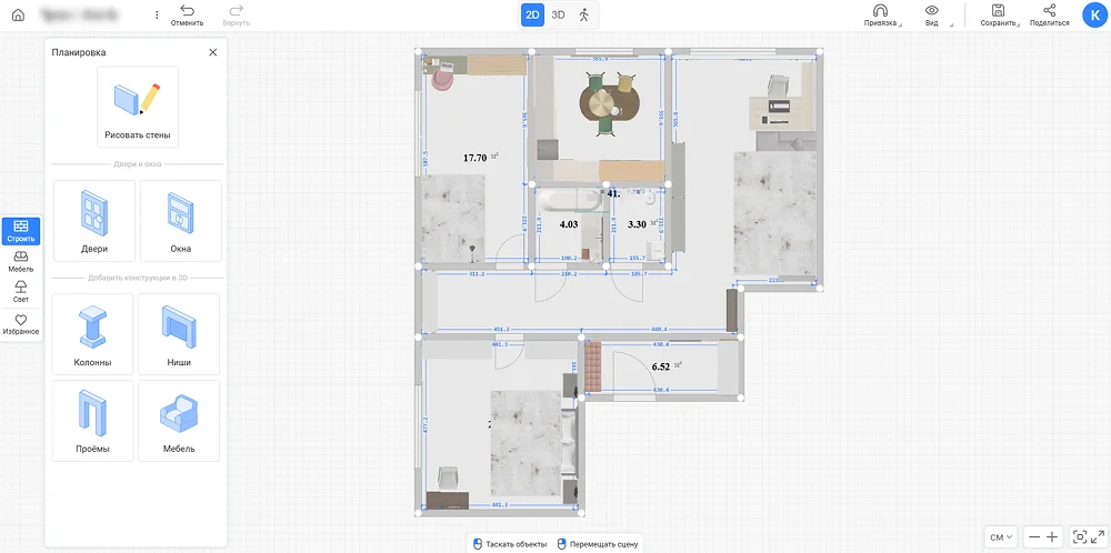 Но если лишних денег нет, а ремонт нужен, выход тоже найдется. Можно создать проект интерьера своими руками, используя простой планировщик вроде RoomPlan 3D. Это бесплатная платформа, которая позволяет: