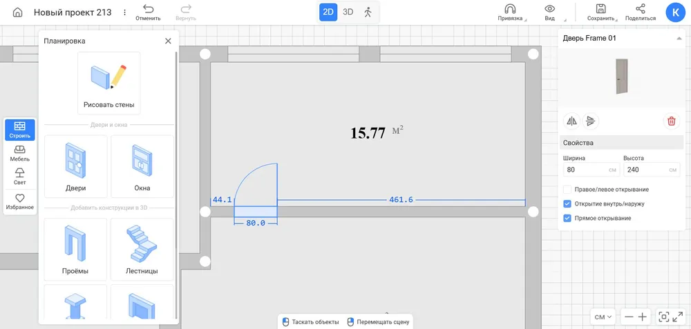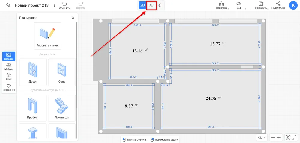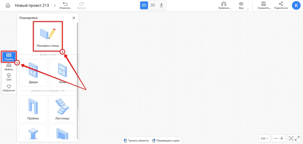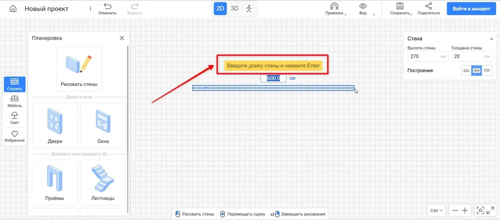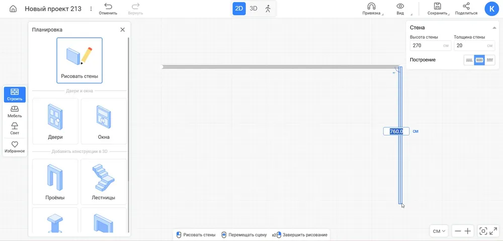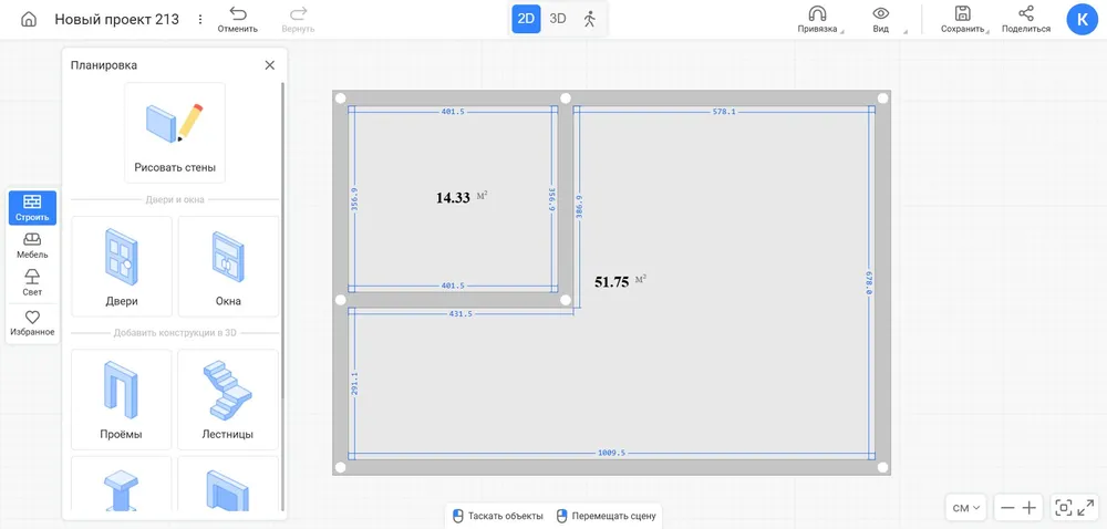 Когда теорию изучили, переходите к практике в простом сервисе. Создайте проект и повторите планировку своей квартиры с точностью до сантиметра!