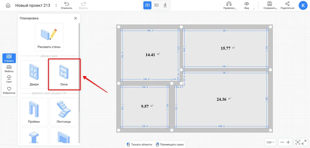 Читайте и стройте одновременно! Откройте RoomPlan 3D в соседней вкладке и повторяйте каждый шаг на своем проекте вслед за нами.
