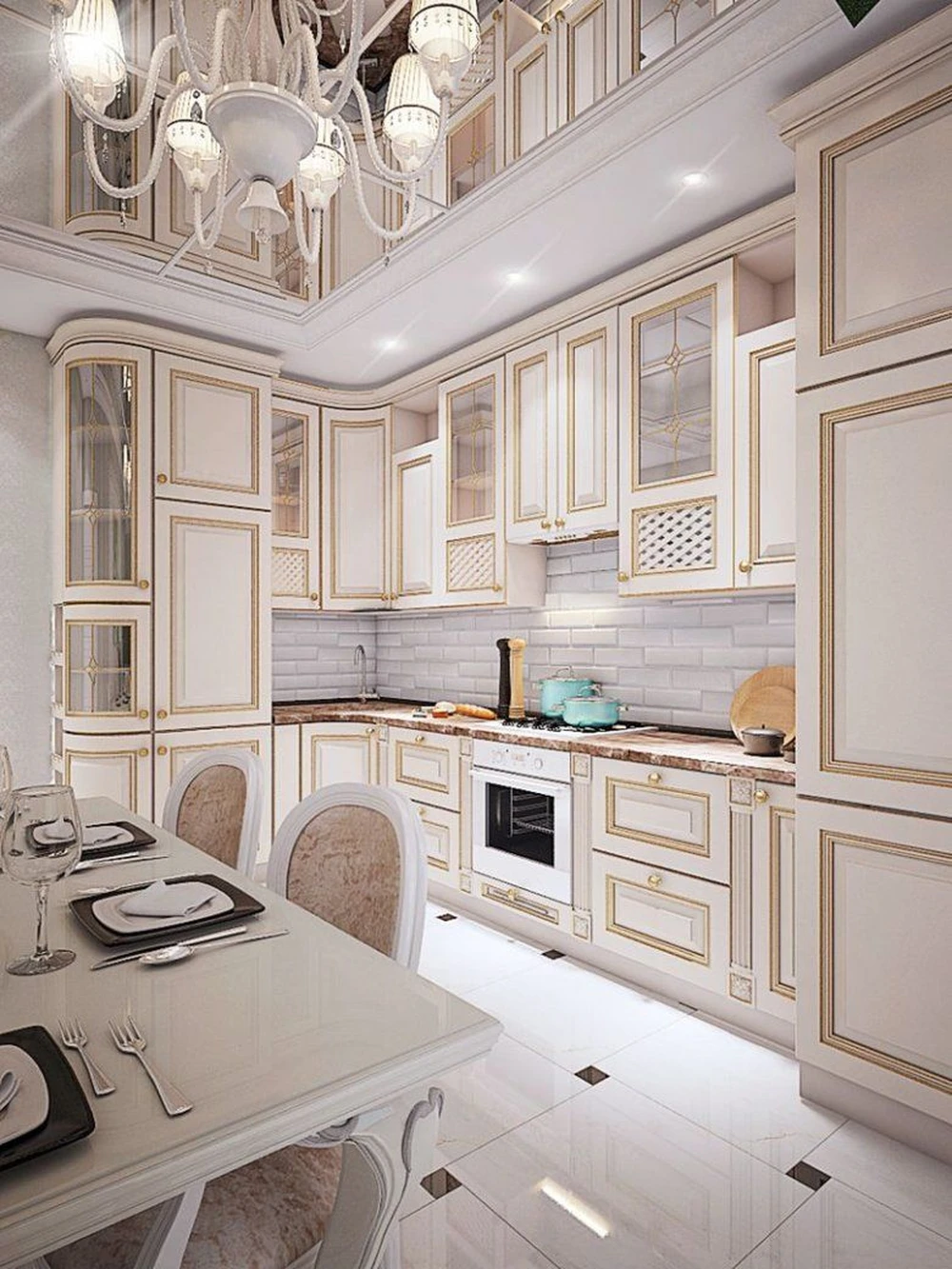 При самостоятельном проектировании кухни нужно сразу определиться с местом для обеденной группы. Поставив ее в углу, вы сэкономите пространство, а расстановка по центру создаст более уютную атмосферу.