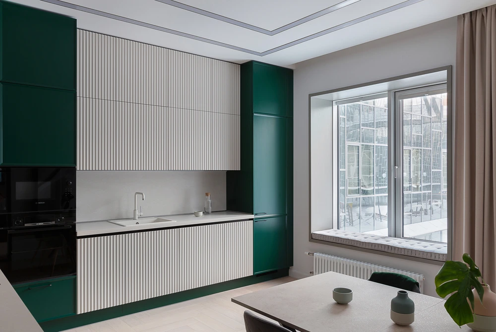 Поскольку зона готовки — это место с постоянными перепадами влажности и температуры, к выбору материалов нужно подойти ответственно. Они должны быть износо- и водостойкими, а также легко очищающимися и безопасными в использовании.