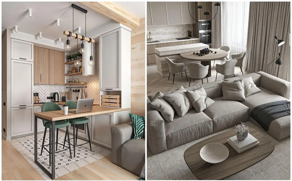 Мебель — самый универсальный и доступный инструмент разделения пространства. Большой диван, стеллаж, консоль или даже барная стойка могут четко обозначить границу между гостиной и кухней, спальней и рабочей зоной. Такой метод не требует вмешательства в конструкцию помещения и легко адаптируется под новые задачи.
