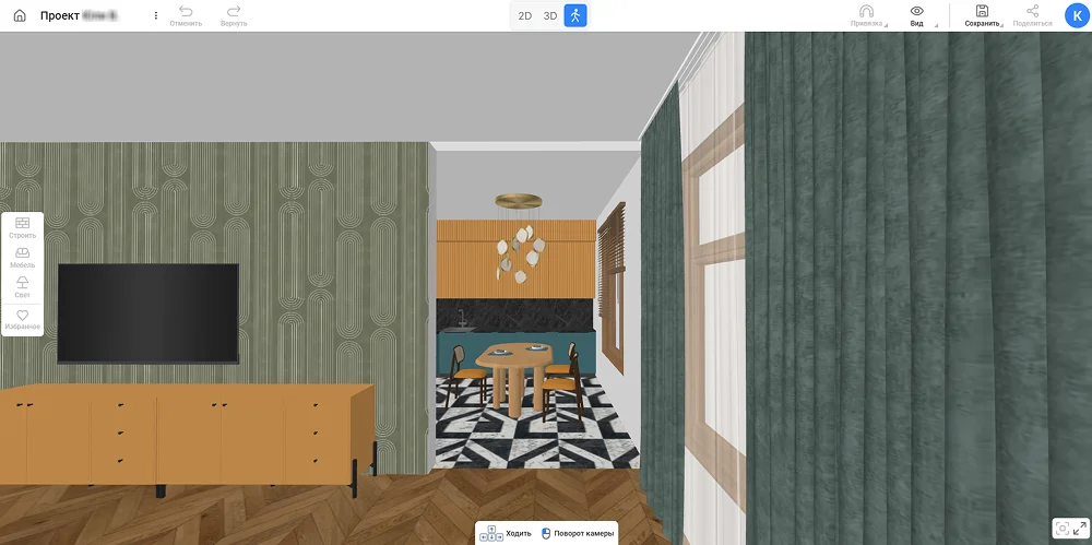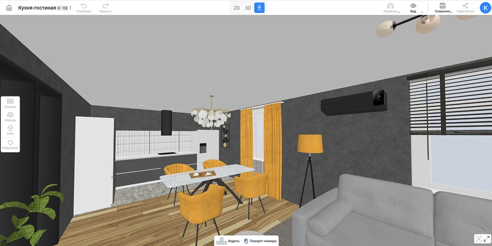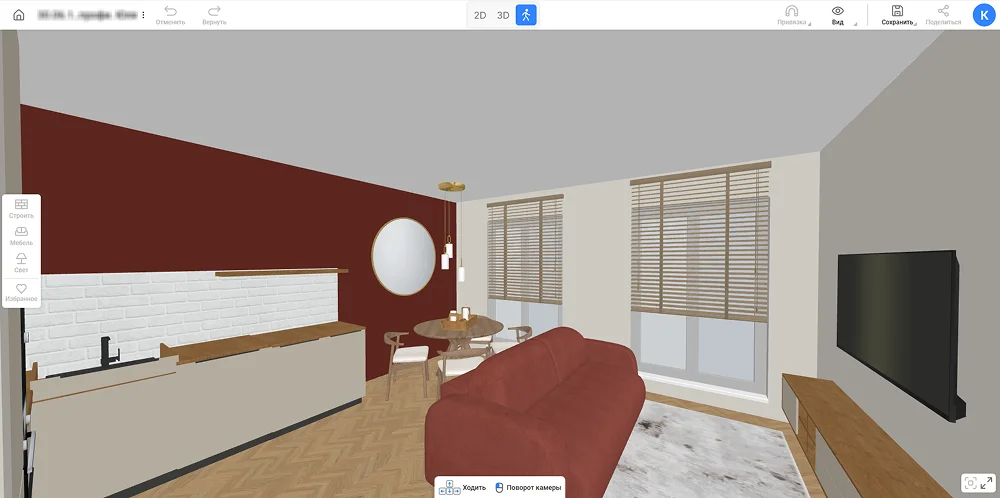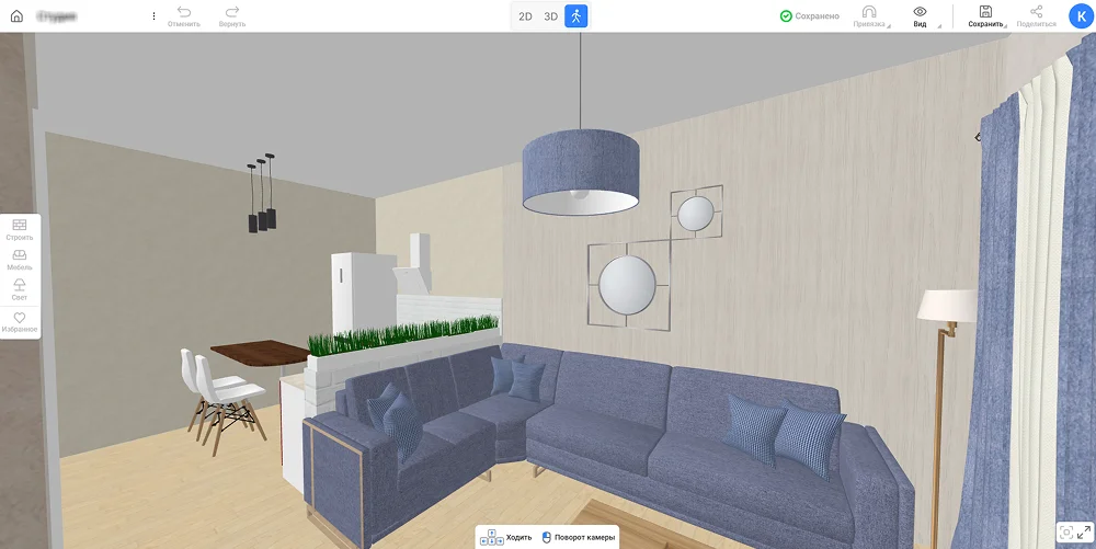 Хорошее зонирование начинается с проекта. Без четкого плана легко ошибиться с масштабами, перекрыть свет или оставить нефункциональные углы. Чтобы избежать этих ошибок, воспользуйтесь бесплатным онлайн-сервисом RoomPlan 3D. Он позволяет за пару часов нарисовать планировку, расставить мебель и протестировать разные способы разделения пространства в масштабе. Именно на его примере мы разберем идеи и примеры зонирования комнаты.