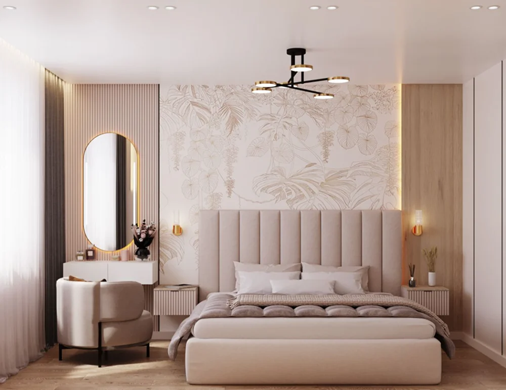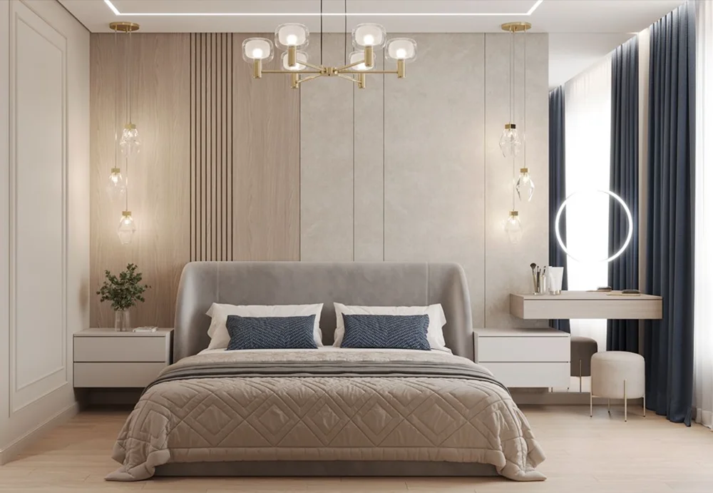 Каждая функциональная зона должна иметь собственный источник света: подвес над обеденным столом, бра у кровати, точечные светильники над рабочей поверхностью. Это не только повышает комфорт, но и задает ритм пространству.