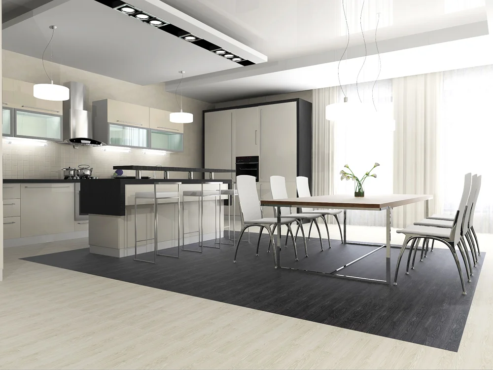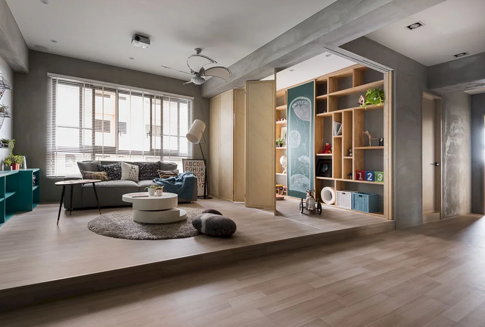 Смена напольного покрытия — один из самых естественных способов зонирования. Используя керамогранит на кухне, паркет в гостиной, ковролин в спальне, можно визуально разделить пространство. Особенно актуально такое решение в студиях без физических перегородок.