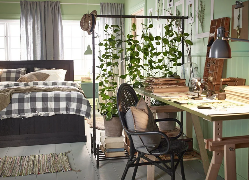 Однако живые декоративные перегородки требуют ухода и достаточного освещения. В темных комнатах растения быстро теряют свой внешний вид, а потом вянут. Также они не обеспечивают приватности или звукоизоляции — это исключительно визуальное зонирование. Лучше комбинировать с другими методами, например, использовать растения и низкий стеллаж.