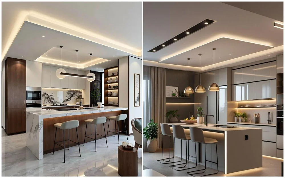 Такой прием уместен только при высоте потолков от 2,8 м. В типовых хрущевках или брежневках он не зонирует пространство, а сделает комнату некомфортной. Если высоты мало, ограничьтесь изменением цвета потолка или добавлением точечных светильников — этого достаточно для визуального разделения.