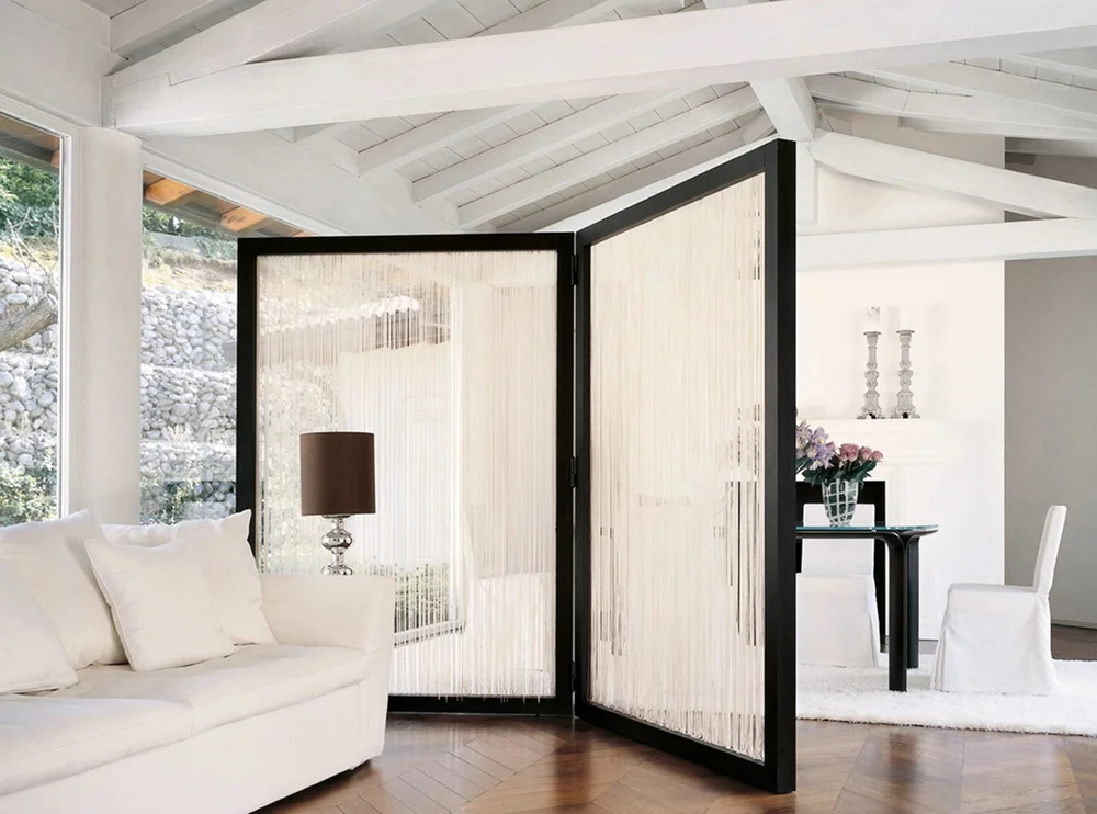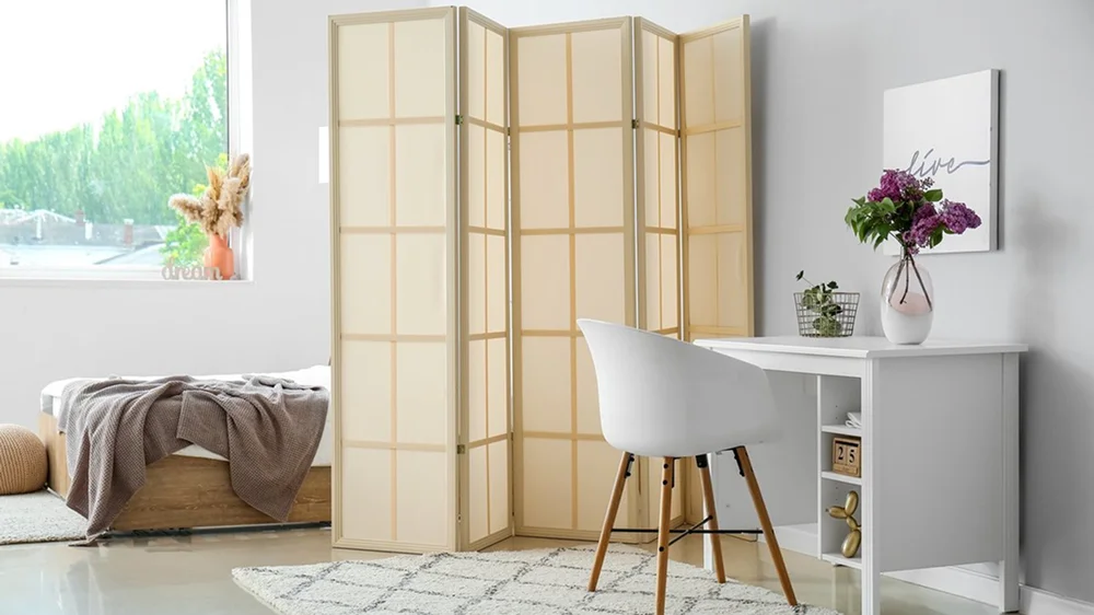 Раздвижные конструкции, складные ширмы, мобильные экраны на колесиках — идеальное решение для универсальных пространств. Их можно раскрыть утром для рабочей зоны, закрыть вечером для уединения и убрать в гостевой день.