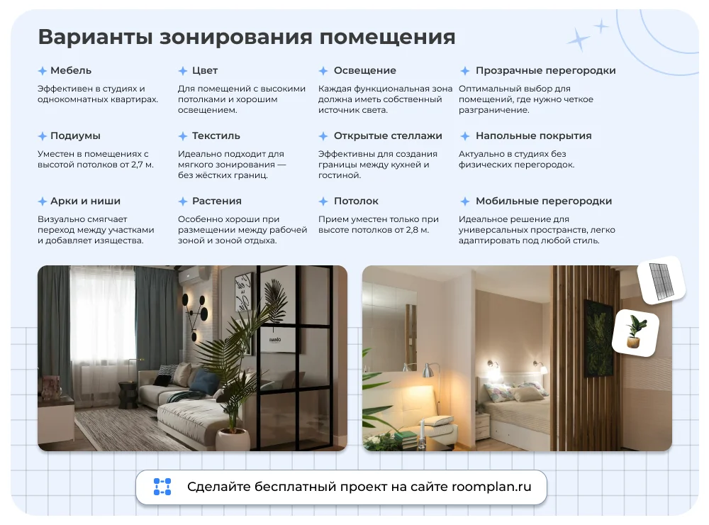 Воспользуйтесь РумПлан и продумайте зонирование