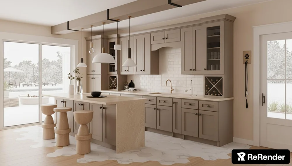 После этого настройте стилистику оформления и сочетание цветов в интерьере. При желании укажите время суток, сезон, погоду, а также введите подробный англоязычный промпт. В ReRender есть и другие удобные инструменты: улучшение изображения, меблировка, редактирование итоговой сцены нейросетью.