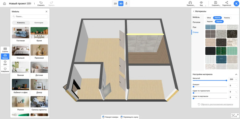 Проверить сочетаемость материалов отделки. Комбинируйте любые из 1900 текстур, меняйте цвета по своему вкусу. В наличии разные виды дерева, камня, плитки и прочие.